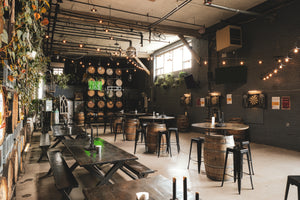 Blood Brothers Brewery is situated in a renovated hundred-year-old horse stable in the Geary Avenue arts district. We seat 50 comfortably indoors and have additional patio seating for 50 in the warmer months. Expect up to 26 of our beers on tap, exquisite "southern comfort" dishes provided by our kitchen, and bottle shop fridges full of cold cans & bottles for takeaway.